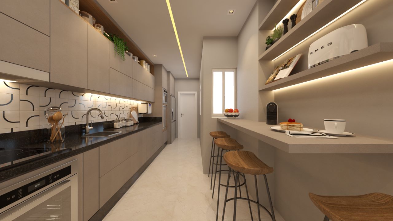 Design de interior de uma cozinha voltada para conceder praticidade, beleza e renovação para o ambiente