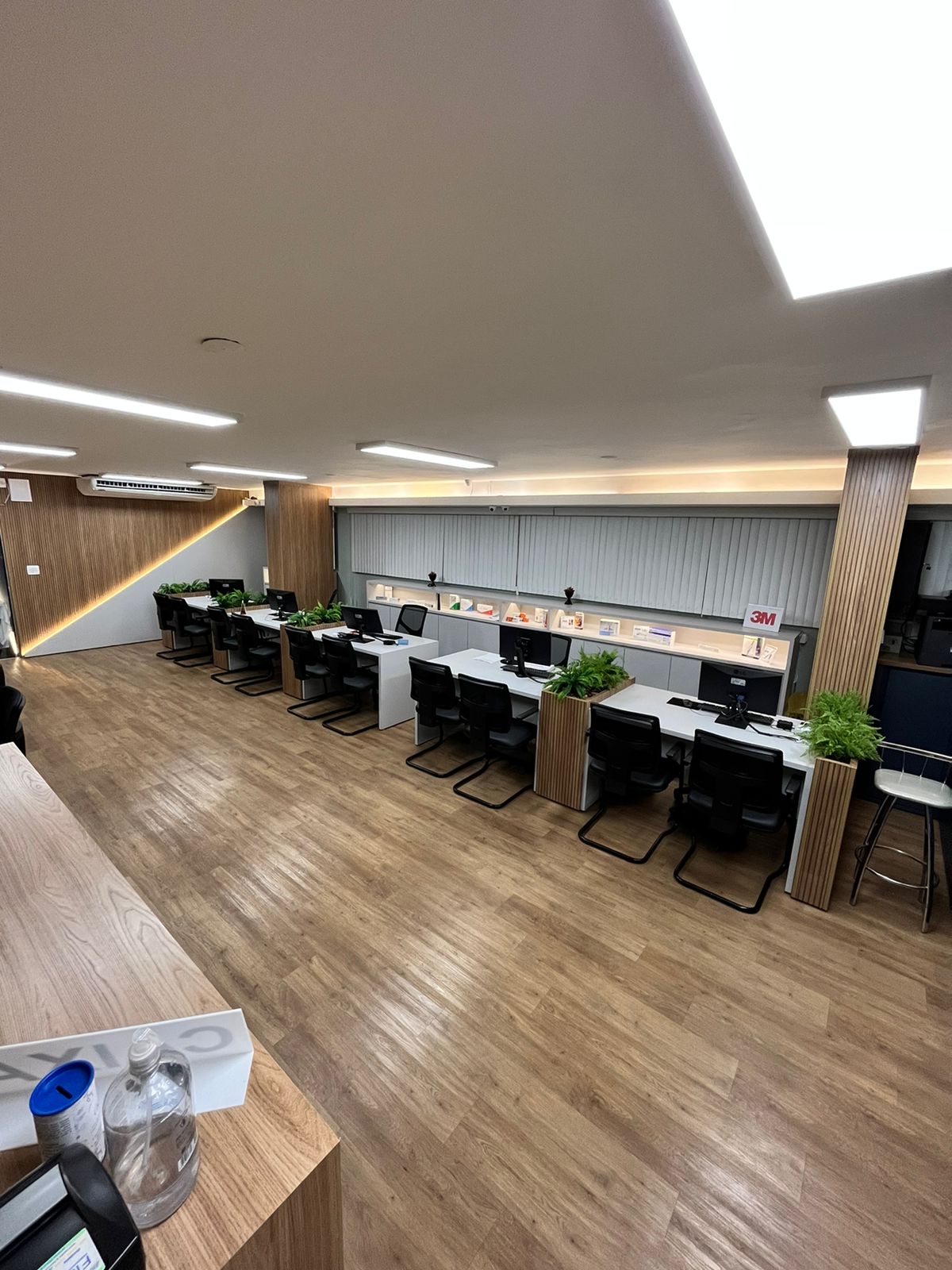 Projeto voltado para revitalizar e modernizar um escritório comercial & showroom de equipamentos visando melhor aproveitamento de espaço e aprimoramento do visual do ambiente